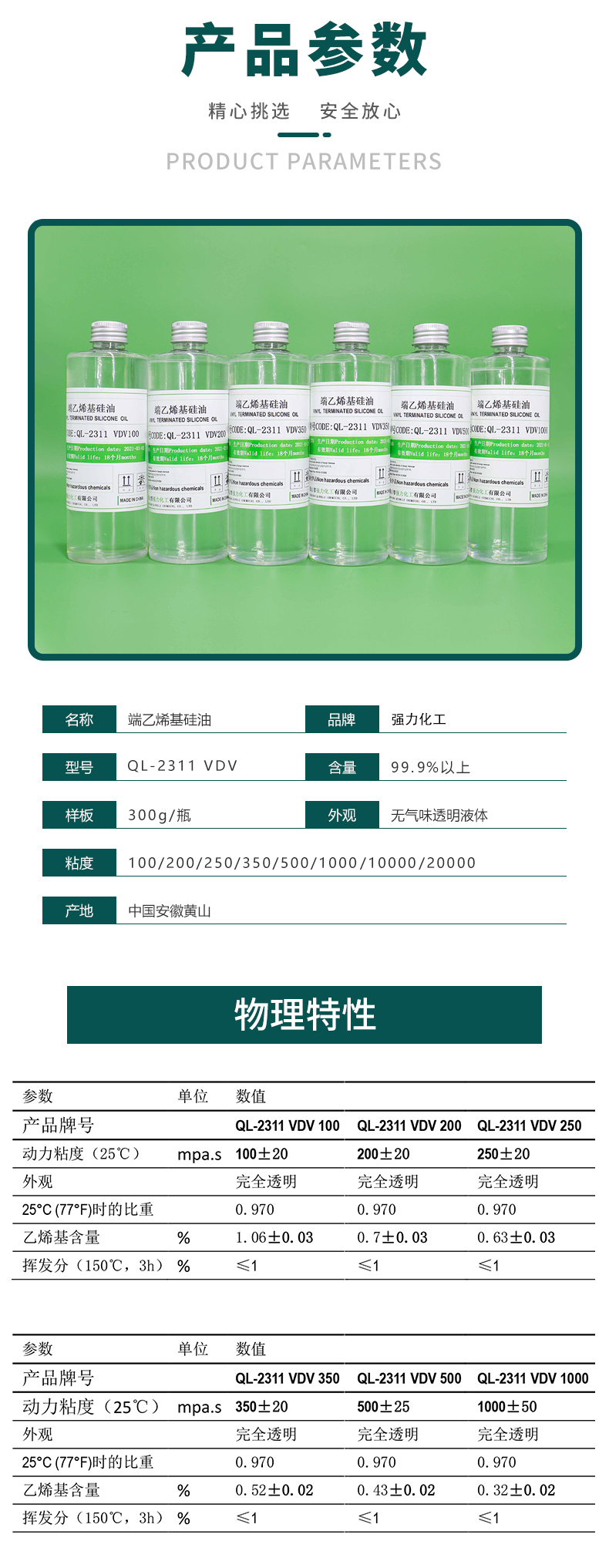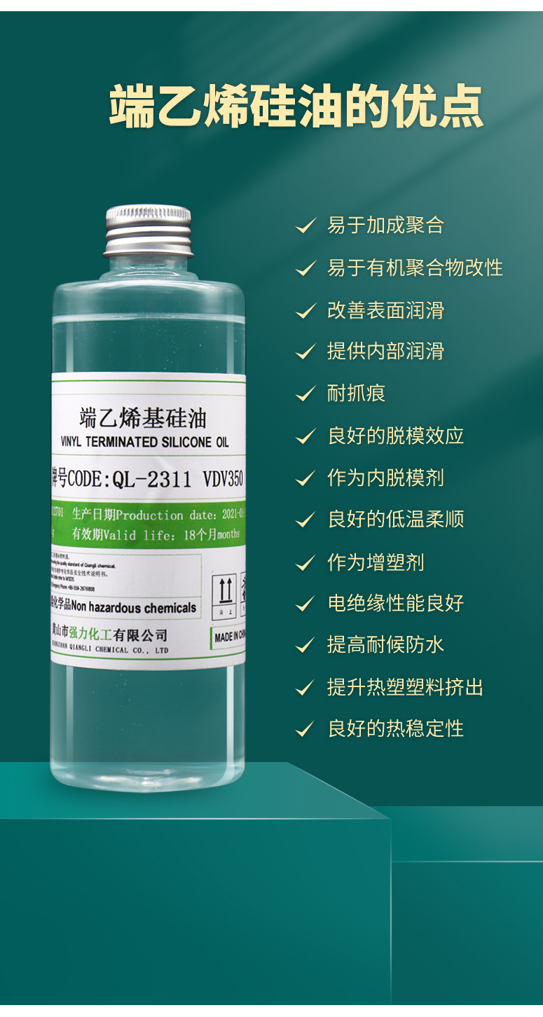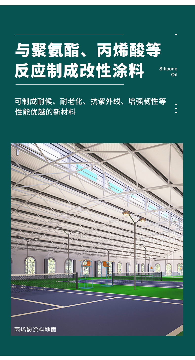 • 端乙烯基硅油与聚氨酯、丙烯酸等多种有机材料反应,可制成性能更优越(耐候、耐老化、抗紫外线、增强韧性等)的新材料;