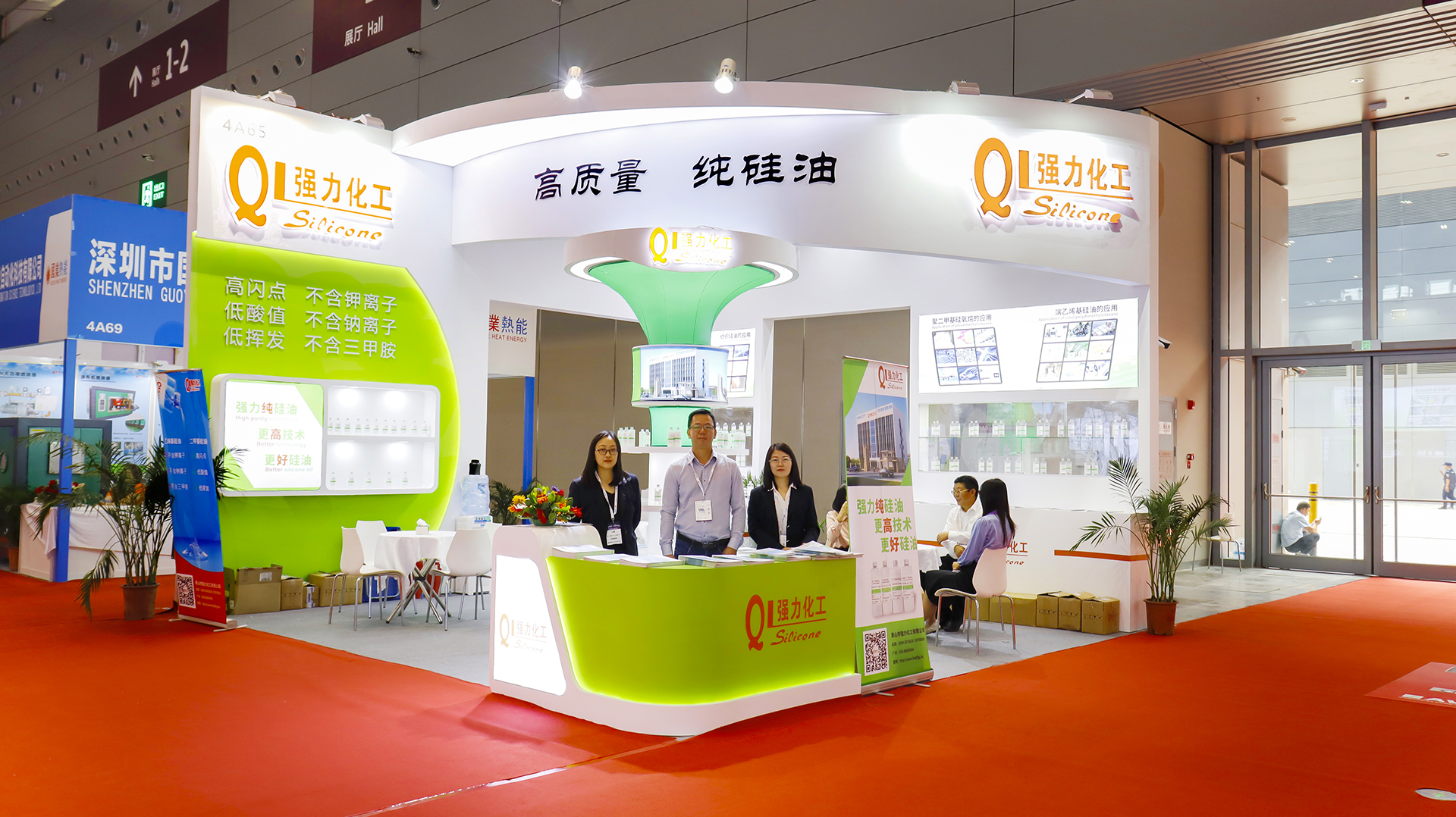 此次展会,在叶光华董事长带领下,派出黄山总部与广州分部的销售精英们隆重参展。展会现场交流气氛热烈,小伙伴们热情招待客户,耐心解答客户问题,与客户进行深切的交流和沟通。同时我司带来了主打产品:聚二甲基硅氧烷5到12500粘度,乙烯基硅油100到20000粘度,氨基硅油2211到2253等不同粘度含氮量共11个牌号的新品以及多个牌号的有机硅乳液参展,高品质高质量的产品也得到了来访客户的一直好评与认可。登录入口的硅油具有高闪点、低挥发、低酸值的特色,不含钾离子、钠离子、三甲胺等离子,登录入口的产品特色是强力纯硅油、更高技术、更好硅油!