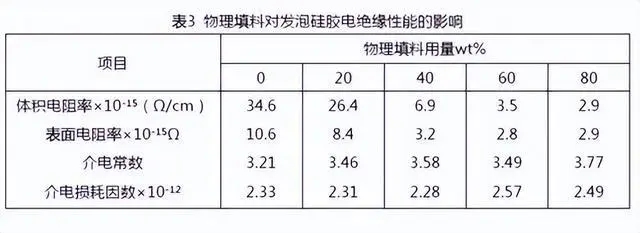 随着物理填料用量的增大,硅橡胶的体积电阻率和表面电阻率呈减小趋势,介电常数和介电损耗因数总体呈增大趋势。可见, 添加物理填料在一定程度上损害了硅橡胶的电绝缘性能。