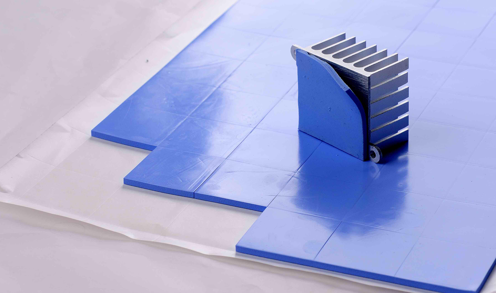 导热硅胶片只起到导热作用,在发热体与散热器件之间形成良好的导热通路,与散热片,结构固定件(风扇)等一起组成散热模组。