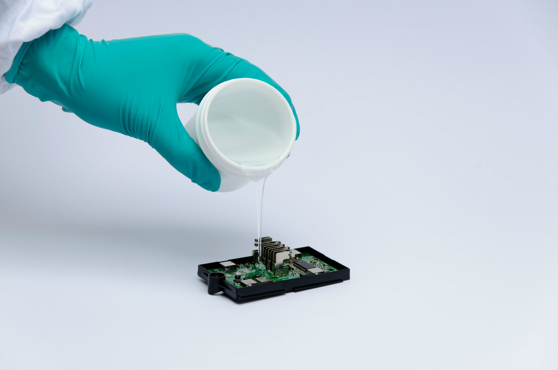无溶剂有机硅保护胶具有更为环保的特性,并且在涂覆后厚度不会损失。它不仅具备更高的黏附力,而且更加耐久,能够在各种恶劣的环境条件下保持稳定的粘接效果。这一特性使得它在更高要求的领域中得到了广泛应用,例如汽车制造、航空航天等领域。