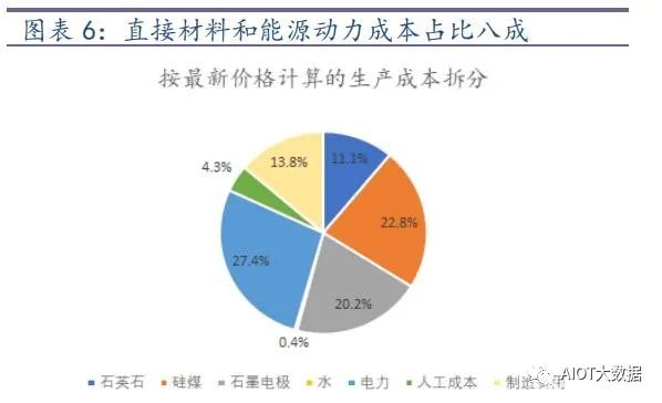 2021 年公司工业硅销量 53 万吨、同比增长 46%,有机硅销量 41 万吨、同比增长 42%。同时 受能耗双控政策影响,产品价格大幅上涨,工业硅销售均价 16,703 元、同比上涨 59%,有机硅销 售均价 29,646 元、同比上涨 72%。 在产品价格上涨的同时,公司成本控制得当,成本涨幅远低于价格上涨。2021 年公司工业 硅生产成本 8,495 元、同比上涨 9%,有机硅生成产本 13,085 元、同比上涨 9%。公司成本控制力 强,主要与区域优势及产业链优势有关。、 直接材料和能源动力在工业硅成本占比高。公司地处新疆,区域内煤炭资源丰富,公司用电 成本低于疆外企业。2021 年公司自发电成本 0.21 元,自发电比例 83%,综合用电成本 0.22 元。新疆石油焦资源丰富,公司拥有 7.5 万吨石墨电极产能,完全自给工业硅并部分外售 。